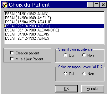 Cliquez une fois sur l’un des bénéficiaires de la carte Vitale. Répondez à la question " S’agit-il d’un accident ? " et le cas échéant aux questions complémentaires. Cliquez sur le bouton " OK ". |